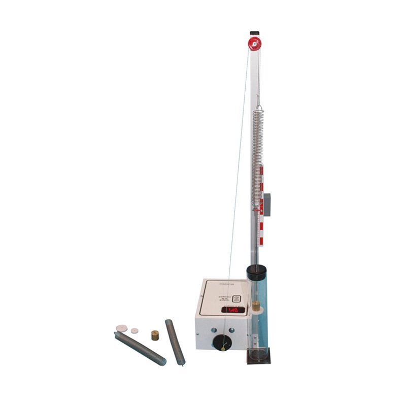 Composition : – 1 pince étau pour fixer les ressorts – 2 ressorts de raideurs différentes – 2 masses + tige et repère de couleur : m= 150 et 200 g – 1 disque pour l’amortissement : m=50g