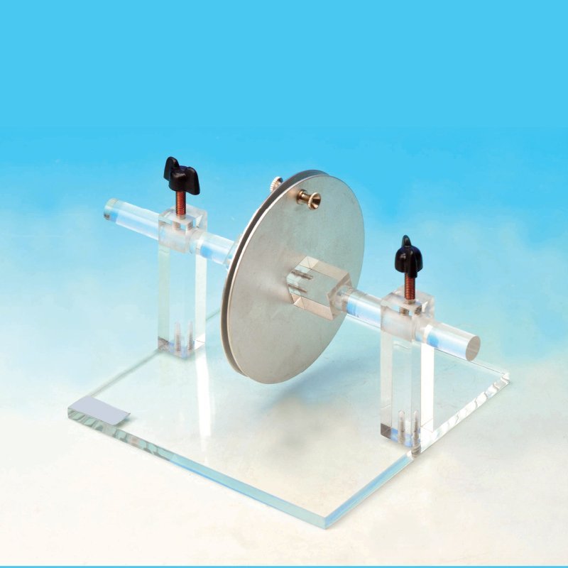 Il se compose de deux plaques de 100 mm de diamètre ; dont on peut faire varier la distance qui les sépare et ainsi étudier le principe du condensateur ( la capacité d’un condensateur varie en fonction de la surface de ses armatures et inversement à la distance qui les sépare) . Monté sur socle stable.