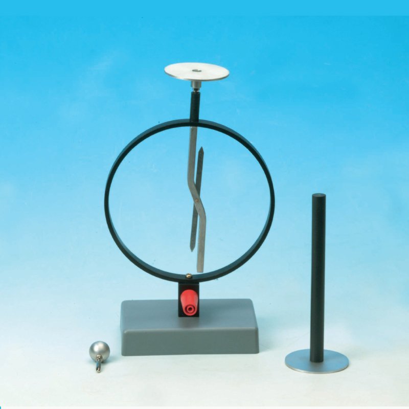 Avec cet appareil on peut mettre en évidence et détécter l’existence de charges d’électricité statique .Il est constitué d’un plateau conducteur prolongé par une tige métallique autour de laquelle pivote une aiguille plate et légère .Le diamètre de cet électroscope est de 150 mm environs et il est livré avec un bâton d’ebonite ou de verre .