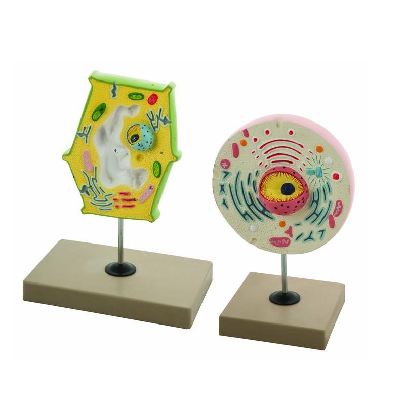 Lot de 2 sur support une cellule animale et une cellule végétale : Pour la comparaison entre differentes structures microsccopiques de ces cellules Dimensions : 17x13x24 cm et 20x12x25 cm