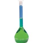 Fioles jaugées à un trait, forme sphérique à fond plat.