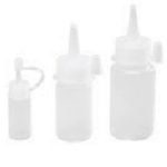 Flacons avec bouchon compte- gouttes, col à vis, entièrement en polyéthylène.