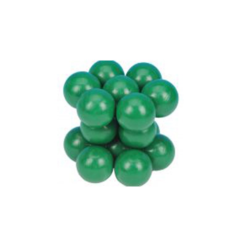 Ensemble de boules prépercées, en matière plastique, colorées dans la masse, de 50 mm de diamètre. Livré avec des raccords compacts. Le montage à réaliser par vous-même est sans difficulté particulière. Collection comprenant deux réseaux du système cubique et un réseau hexagonal (solide primitif composé de prismes centrés) :
